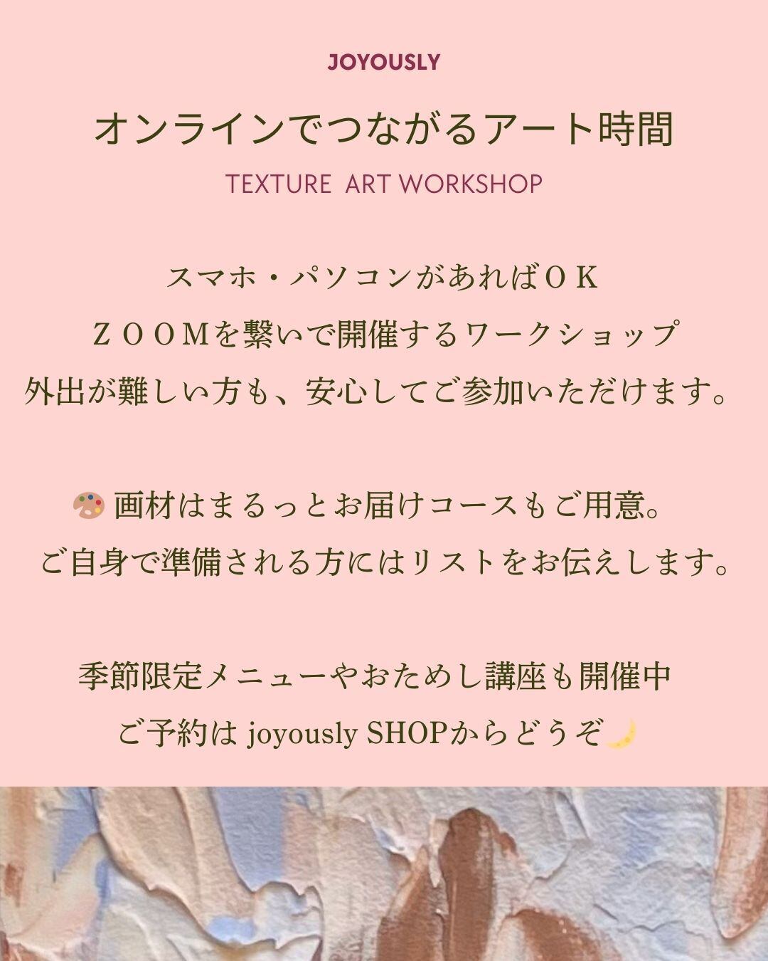 テクスチャ―アートの約90分のオンラインアートワークショップになります。